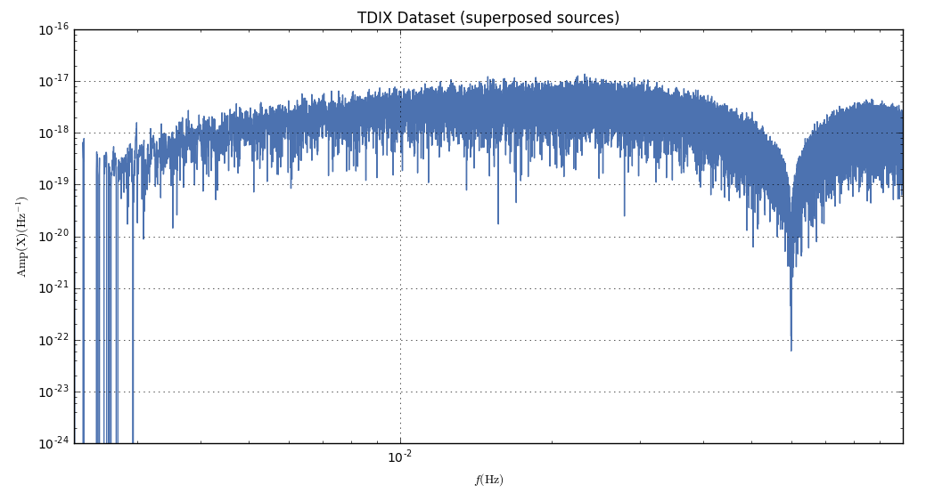 Statistics are Gaussian, but the spectral shape is shrouded in mystery, with parameters chosen for us by the LISA Consortium Cosmology Working Group. The signal is generated using LISACode as a choir of elementary sources uniformly distributed across the sky. To make things easier for you, instrumental noise is Gaussian, uncorrelated, and of the same level in each LISA link.